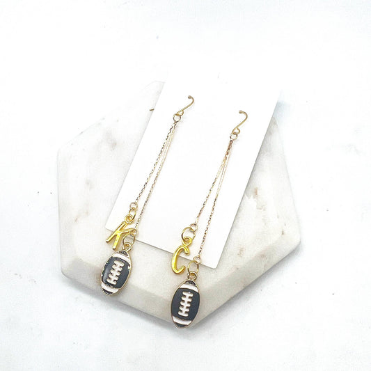 KC Kansas City Gold Football Chain Dangle Earrings