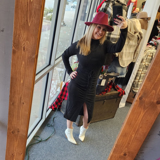 Hey Babe Mock Neck Long Sleeve Ruched Front Dress