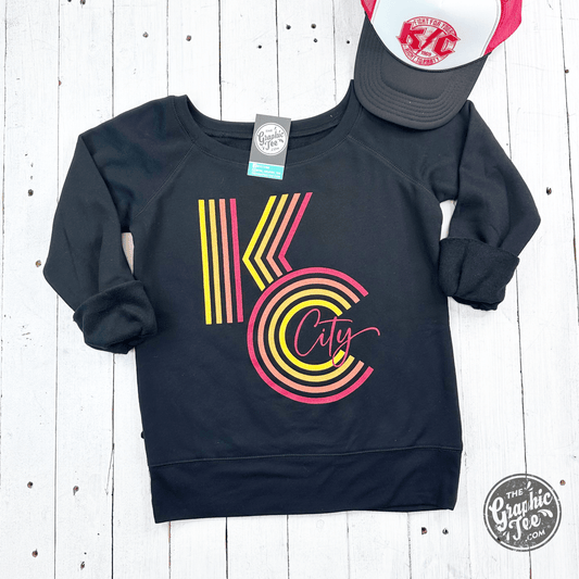 KC Ombre Black Ladies Wide Neck Sweatshirt