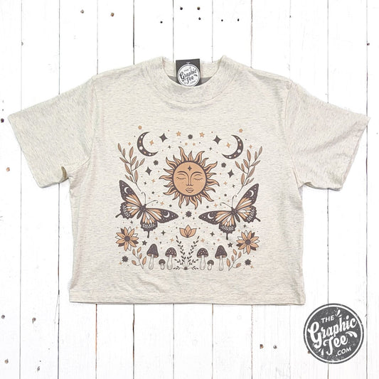 90's Vibes Celestial Mid Length Crop Drop Sleeve Short Sleeve Tee