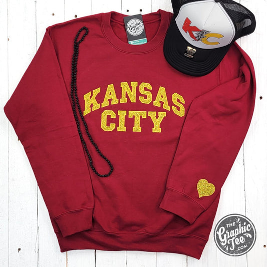 Kansas City Gold Glitter Applique Dark Red Crewneck Sweatshirt